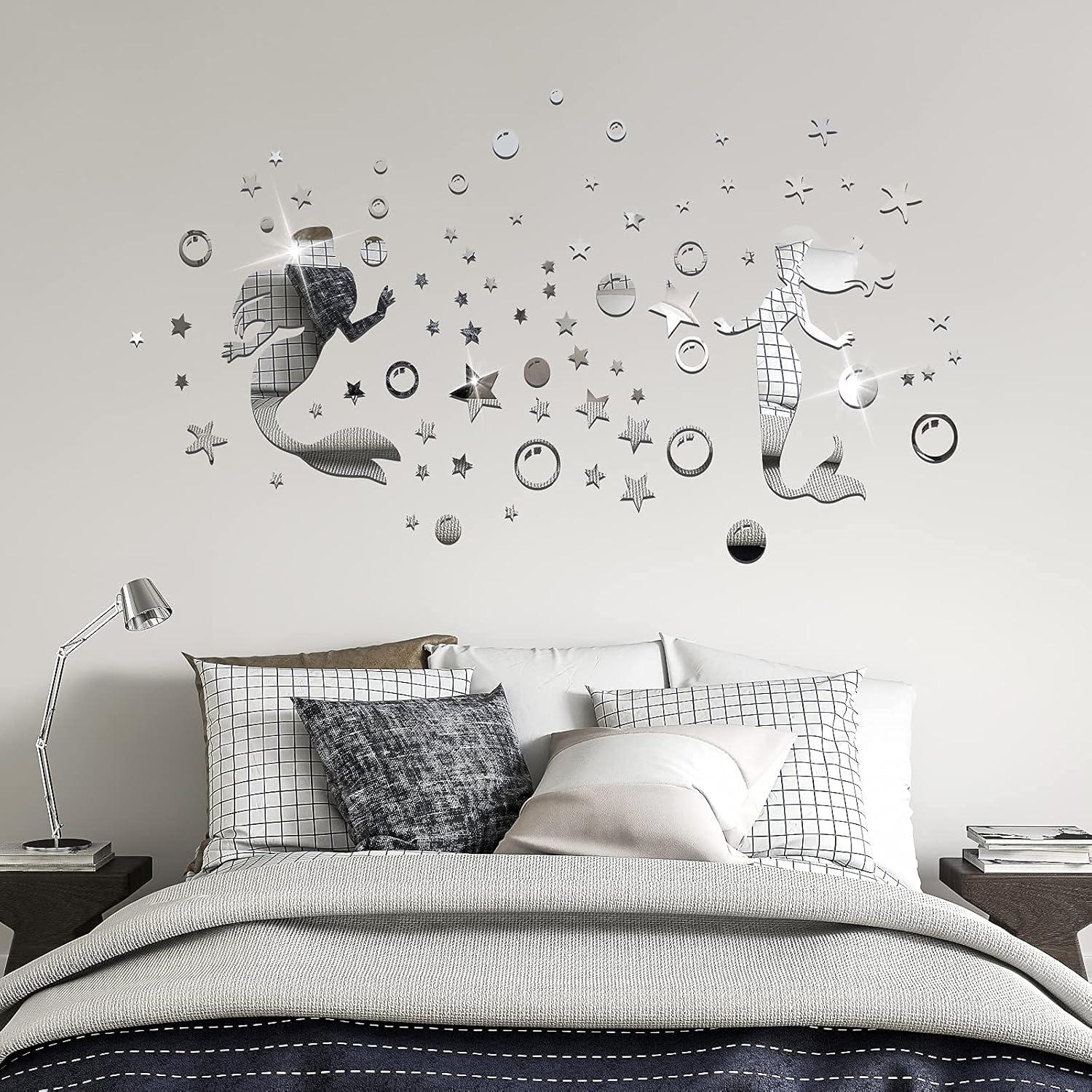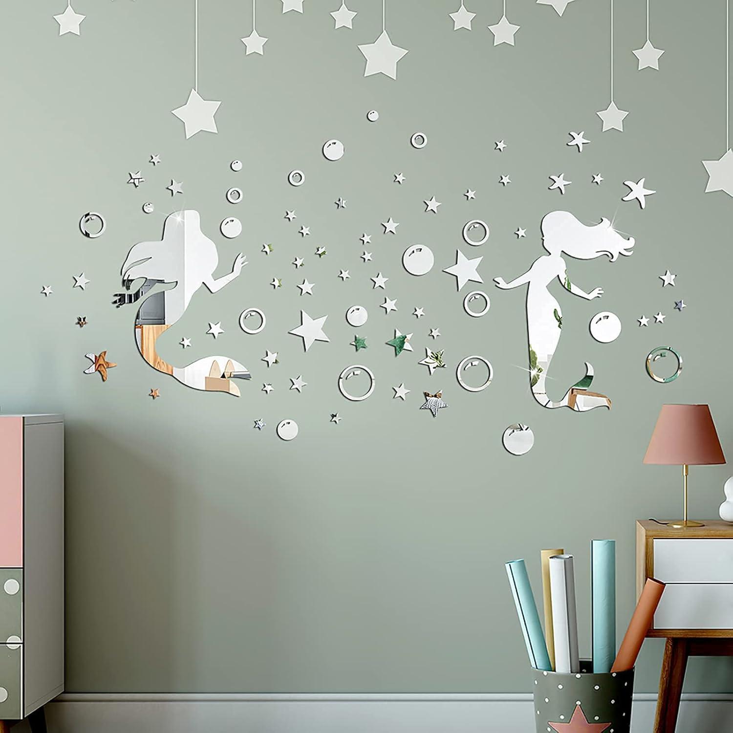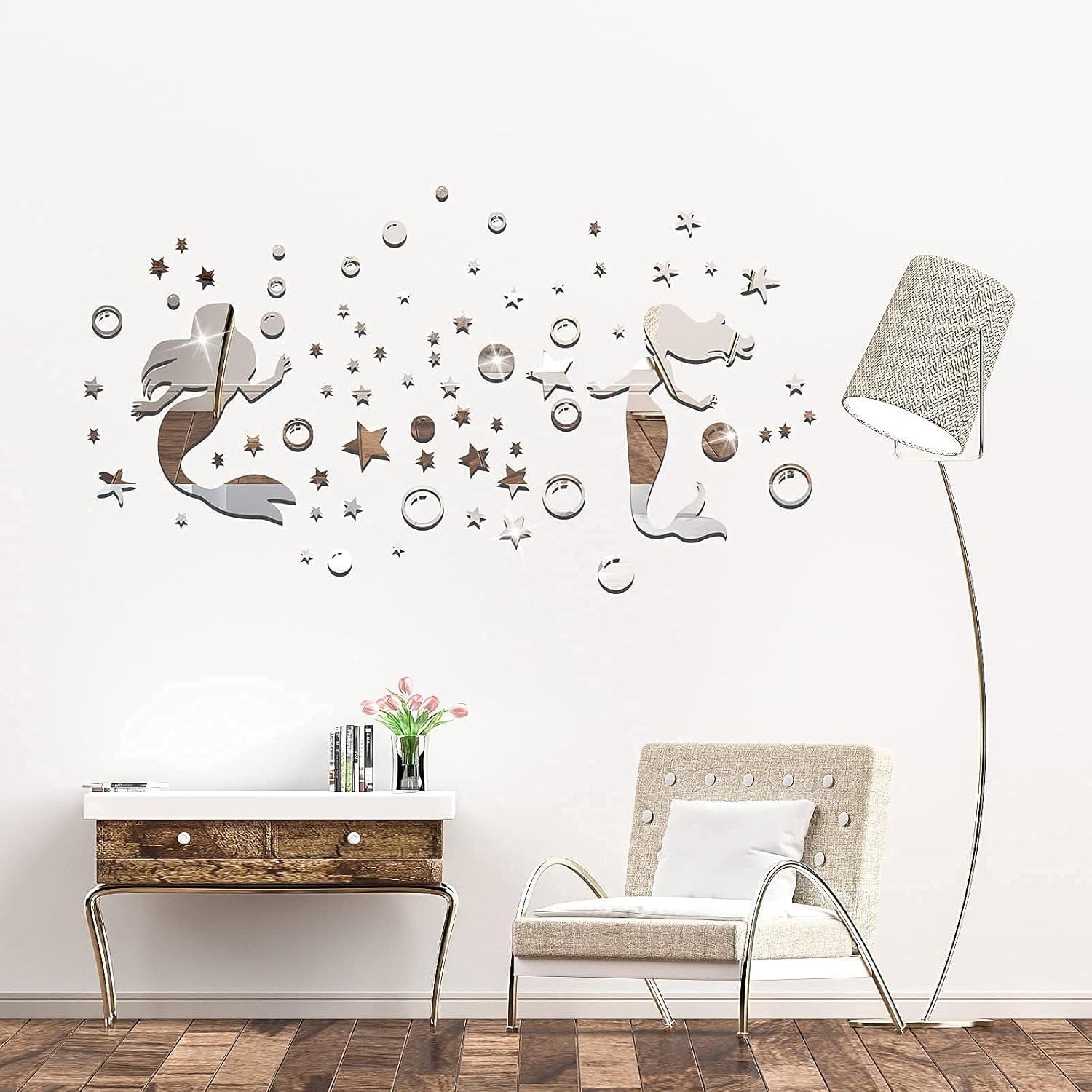 【Fantasy Visual Effects】Two beautiful mermaid acrylic wall stickers not only look stylish but also very unique. It looks very shiny and can reflect the light like stars under the sun's rays. The acrylic mirror decoration on the wall can add charm to your home and expand the space visually.