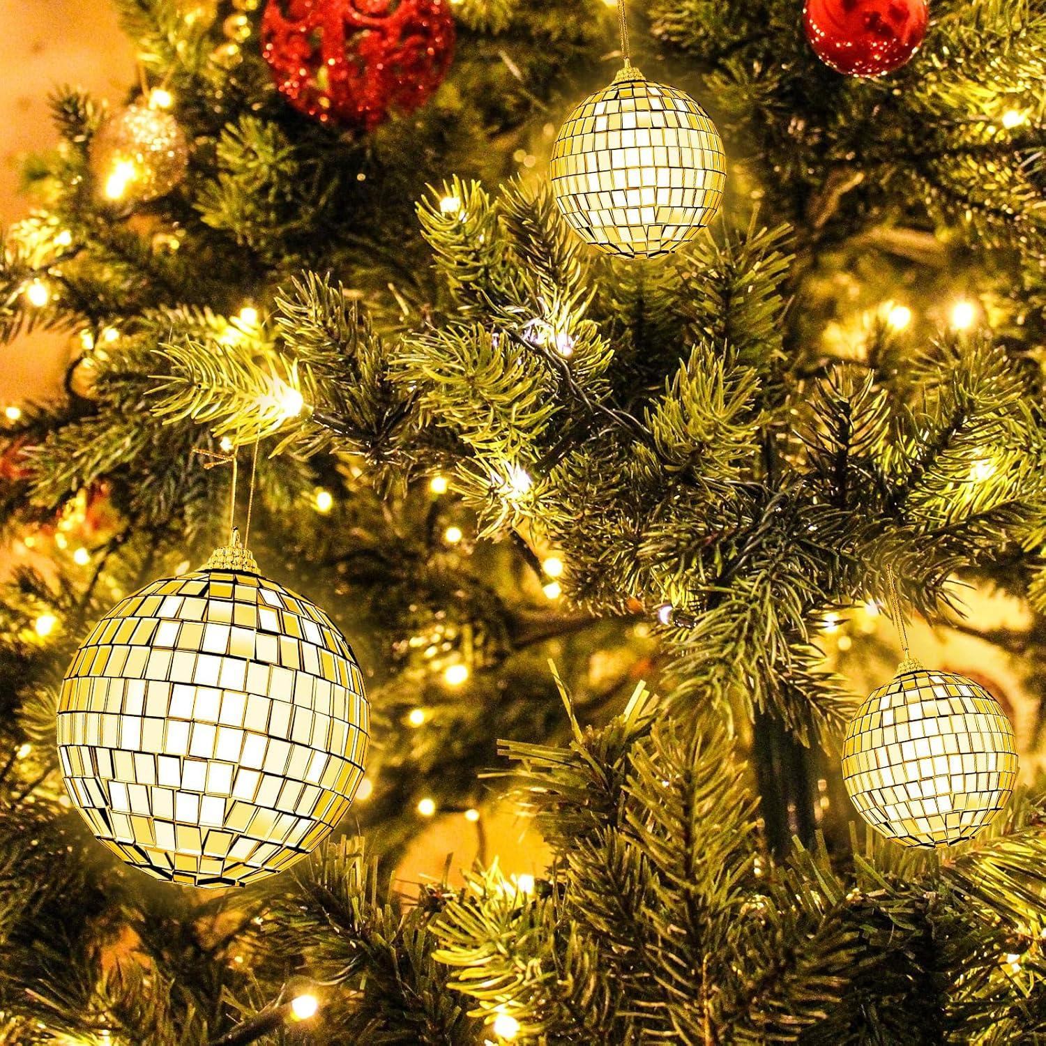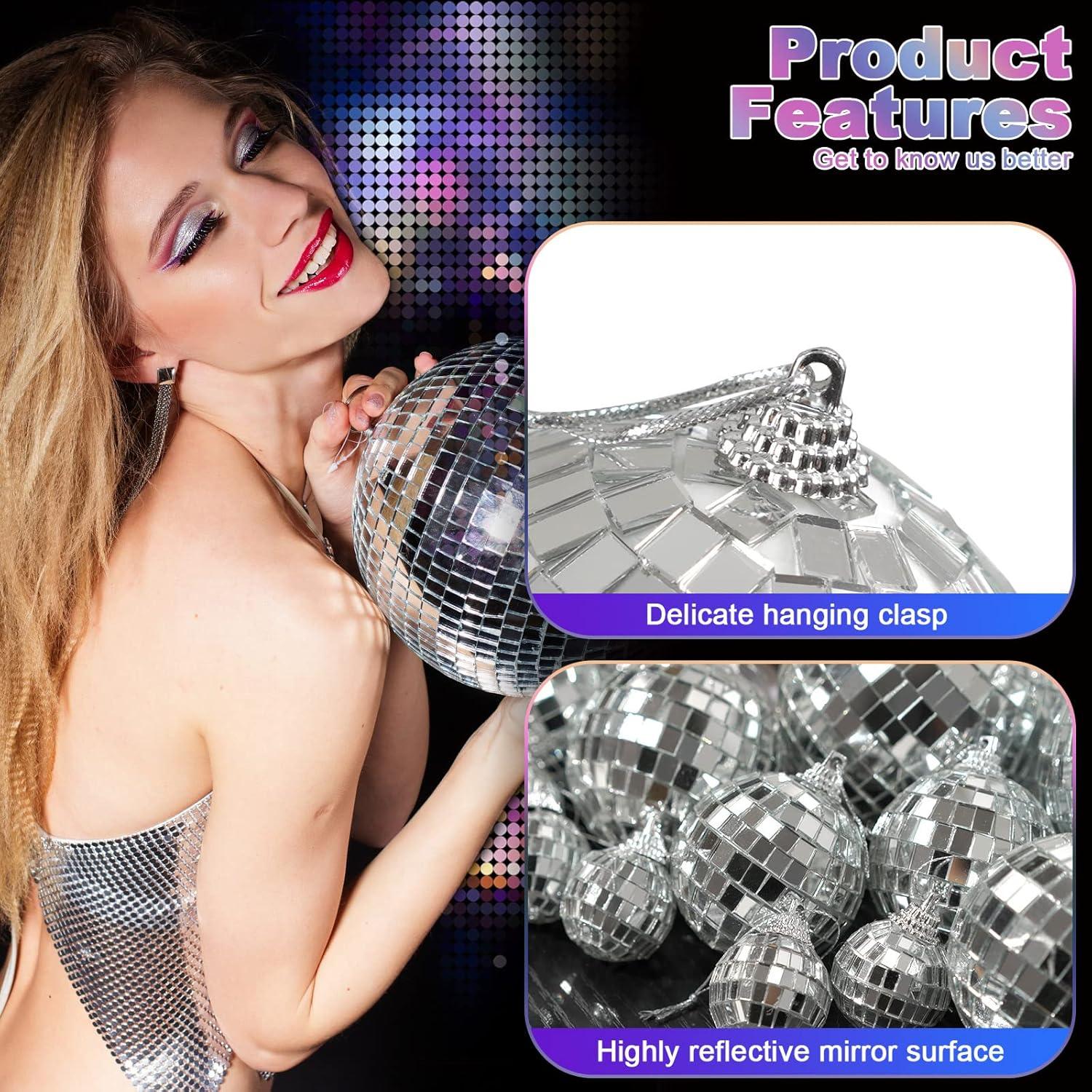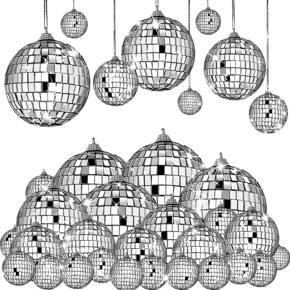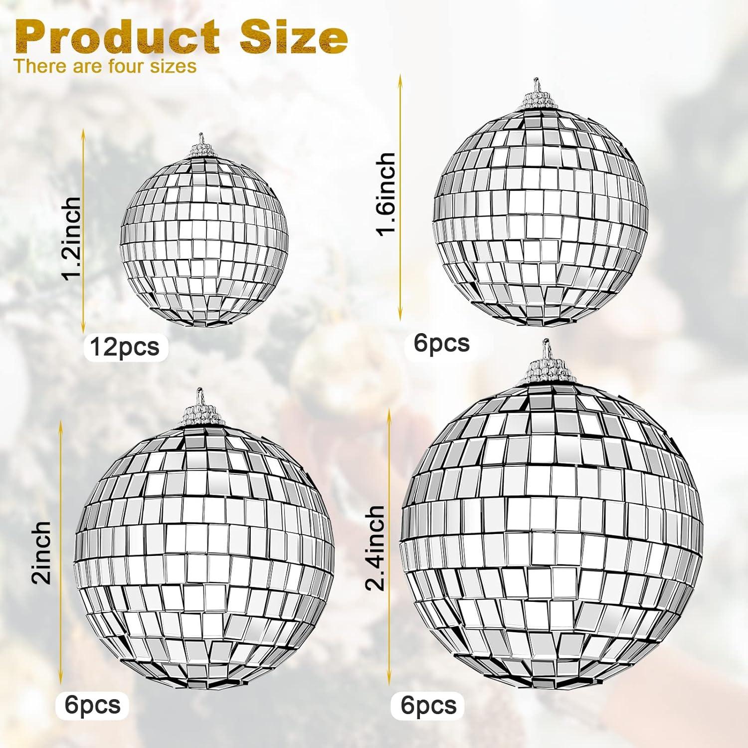 30 Pcs Hanging Mirror Disco Ball, DILIBRA Reflective Glass Disco Balls Christmas Tree Ornaments, Mini Silver Disco Ball Party Supplies for Halloween Festive Holiday Cake Decoration