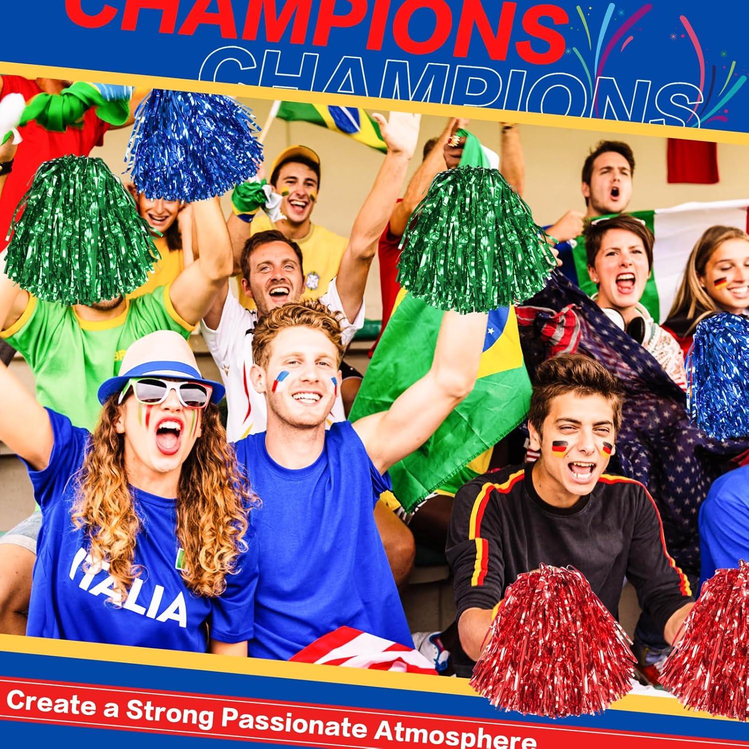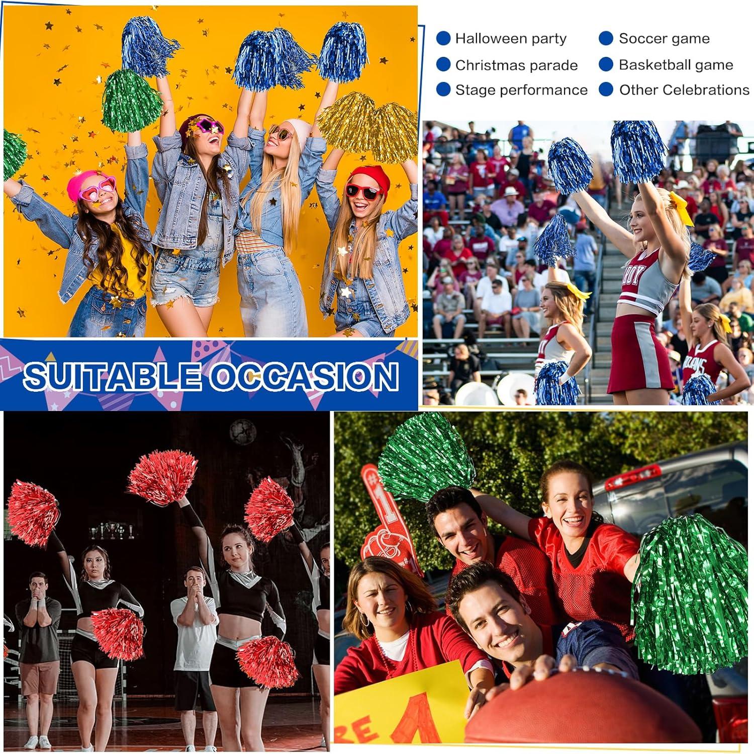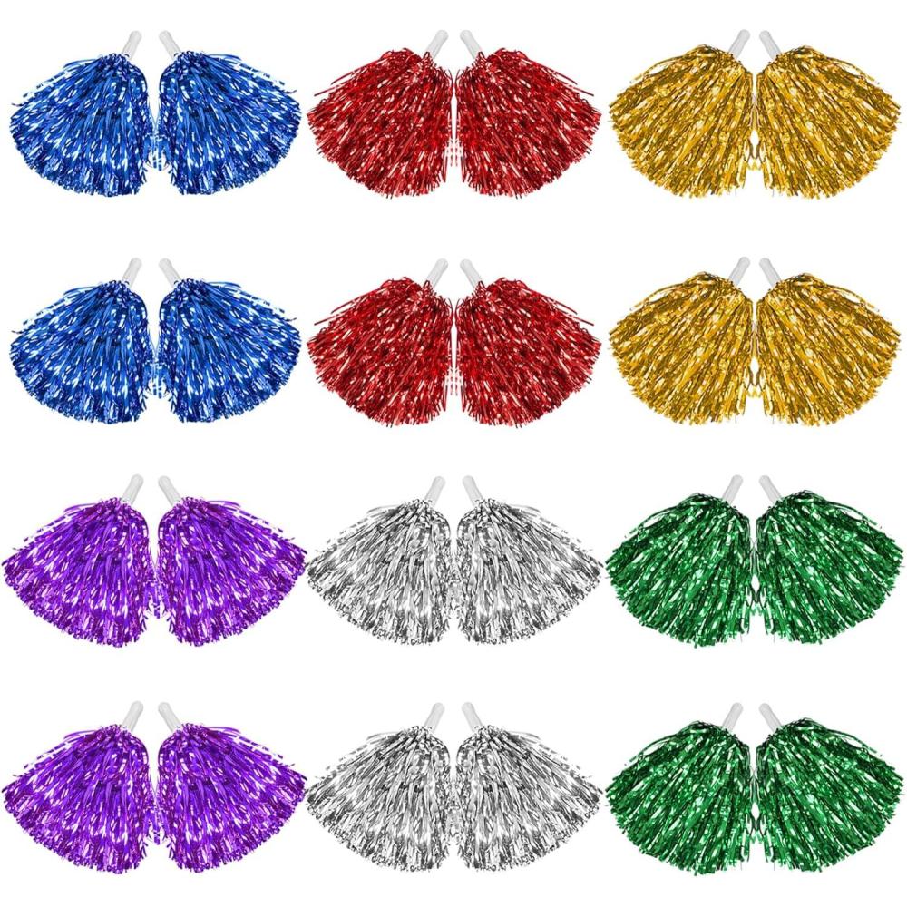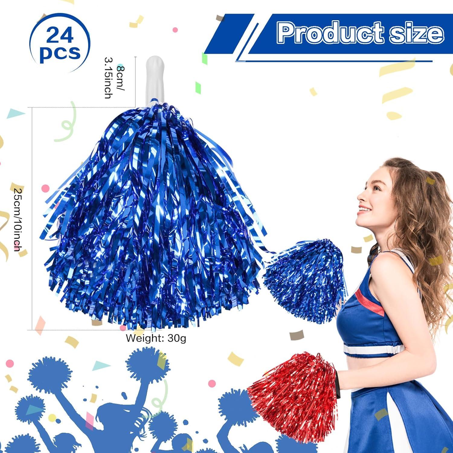DILIBRA 24 Pcs Metallic Cheerleading Pom Poms for Kids, Cheerleaders Cheer Pom Poms with Baton Handle, Cheering Squad Hand Flower for Adults Team Spirit Sports Game Dancing Party(Multicolor)