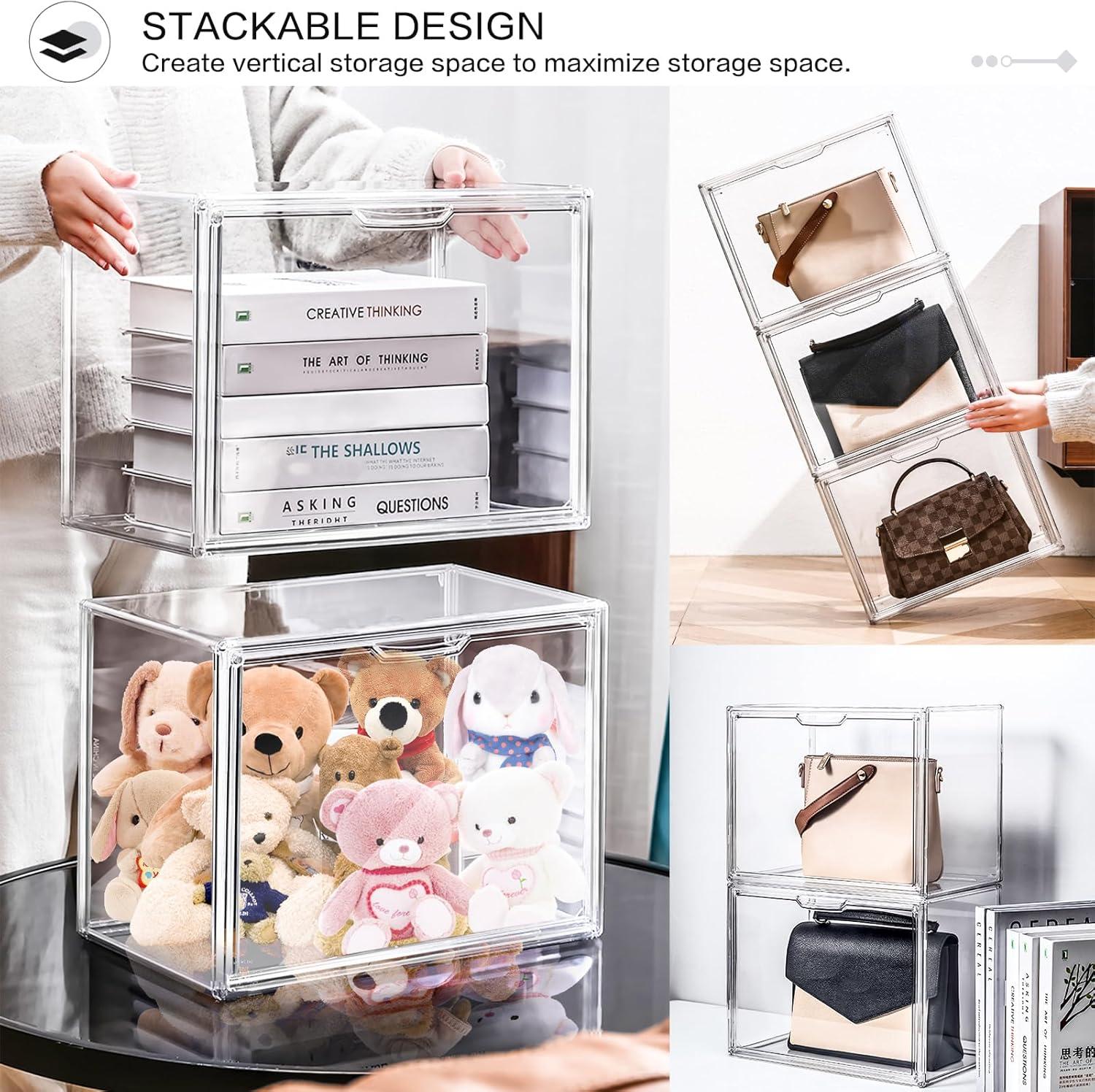 imageDILIBRA 4 Packs Clear Plastic Handbag Storage Organizer for Closet Acrylic Display Case for Purse and Handbag Stackable Storage Boxes Bag Organizer with Magnetic Door for Purse Clutch Wallet Hats2 Packs XLarge  2 Packs XXLarge