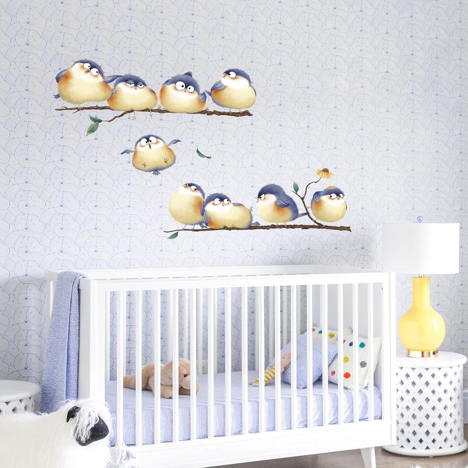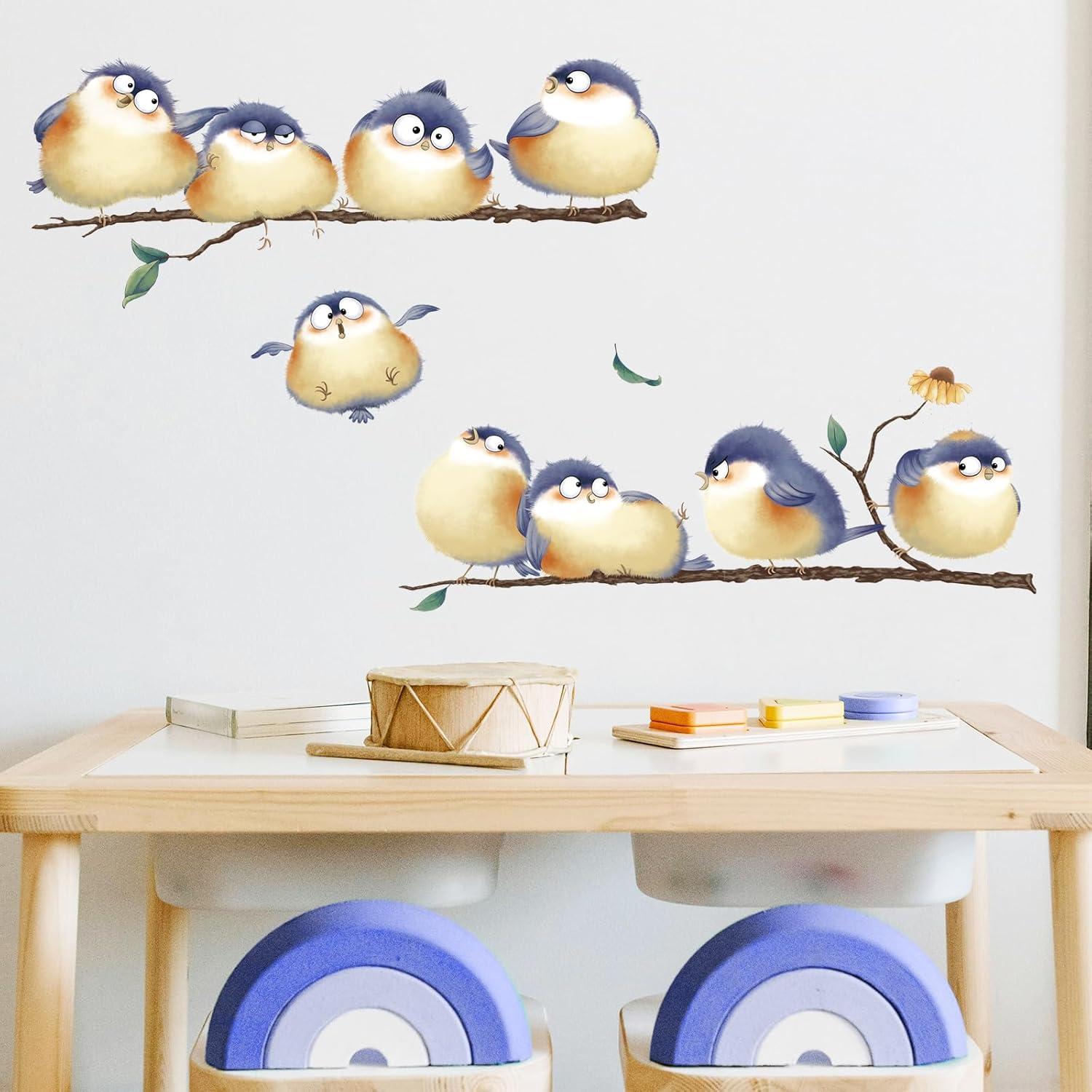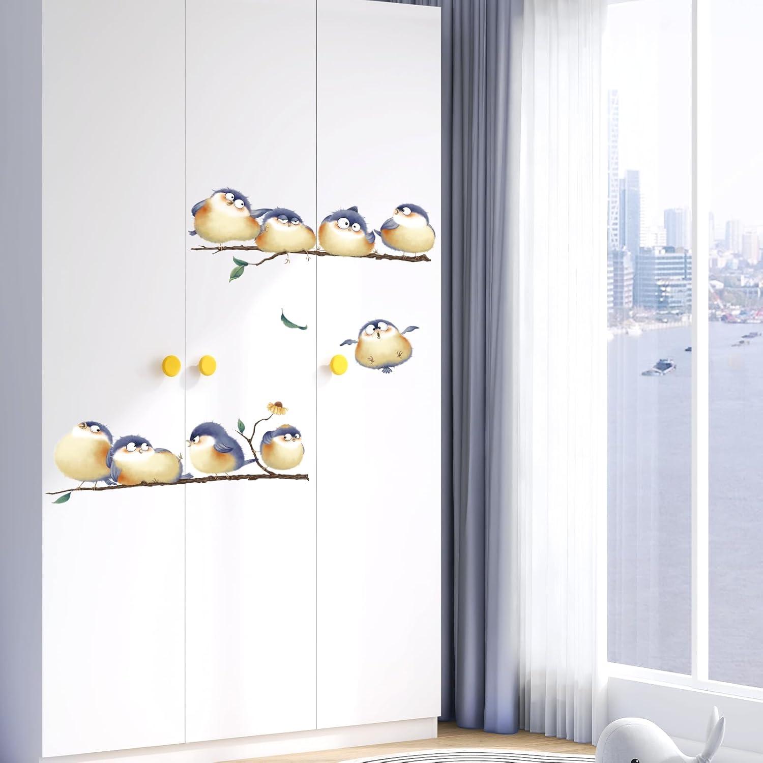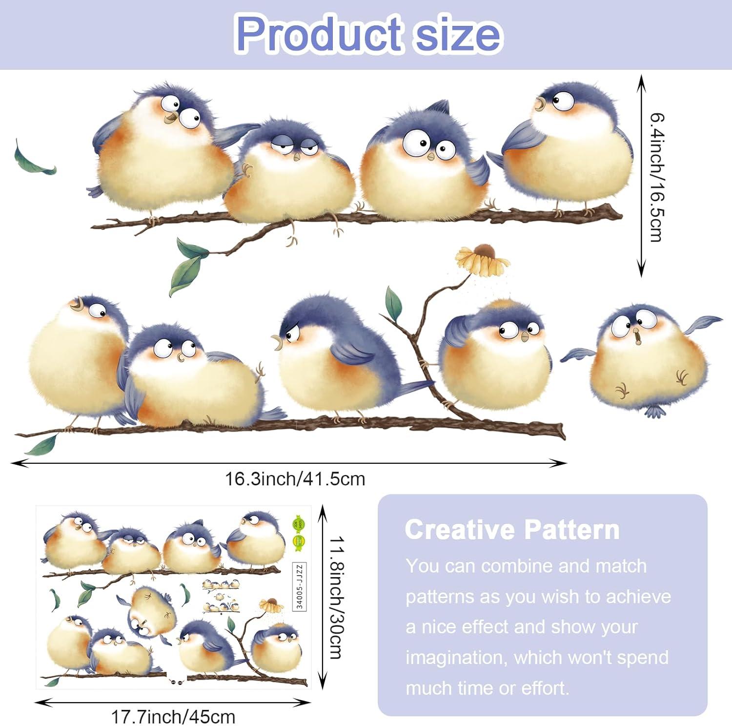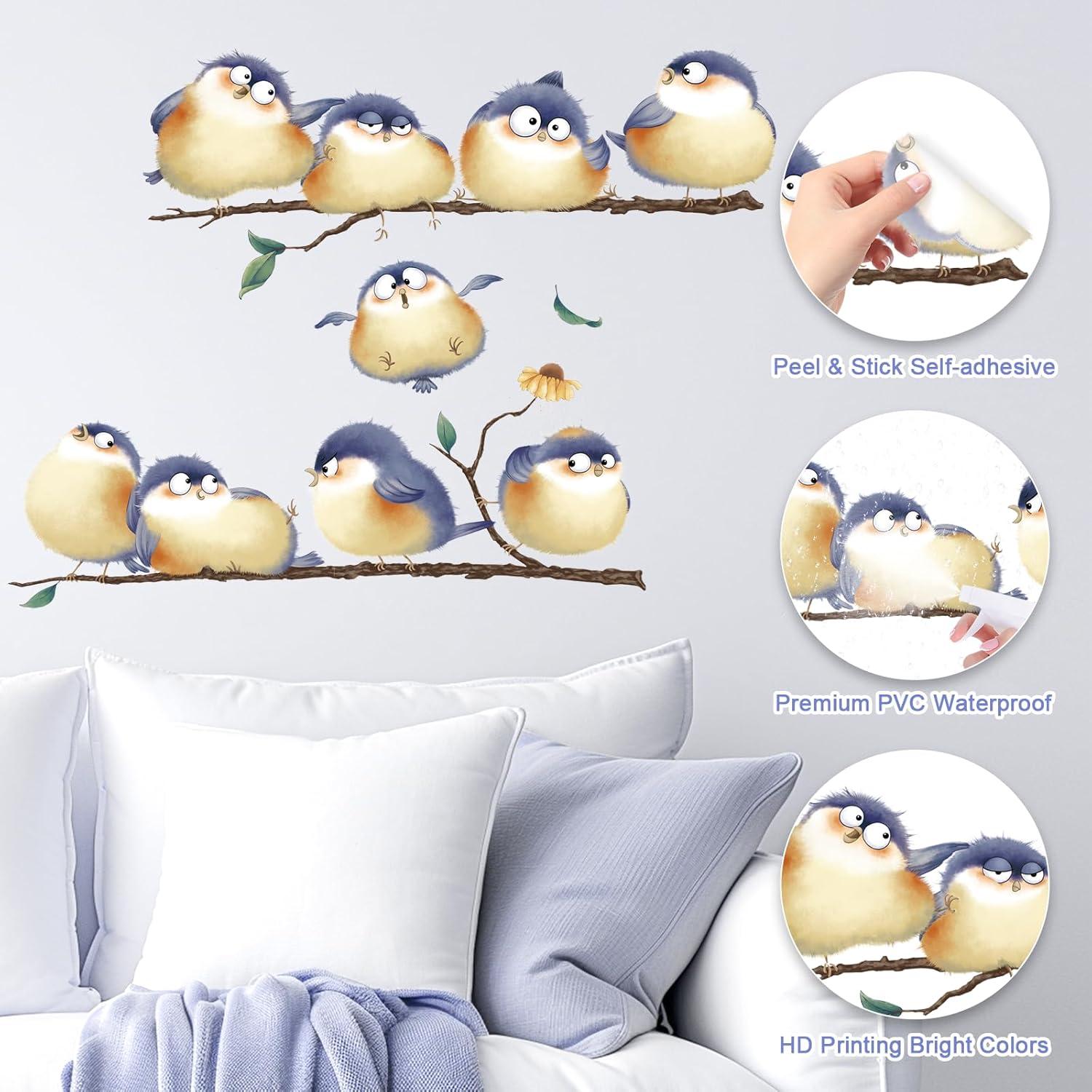 Vivid & Lovely Patterns:These cute bird wall decals with various colorful nature patterns, the vivid patterns that the many cute birds standing on branch add a unique highlight to the blank space, rich cartoon patterns bring wall to life. It is an ideal choice to decorate your children's room or individual space