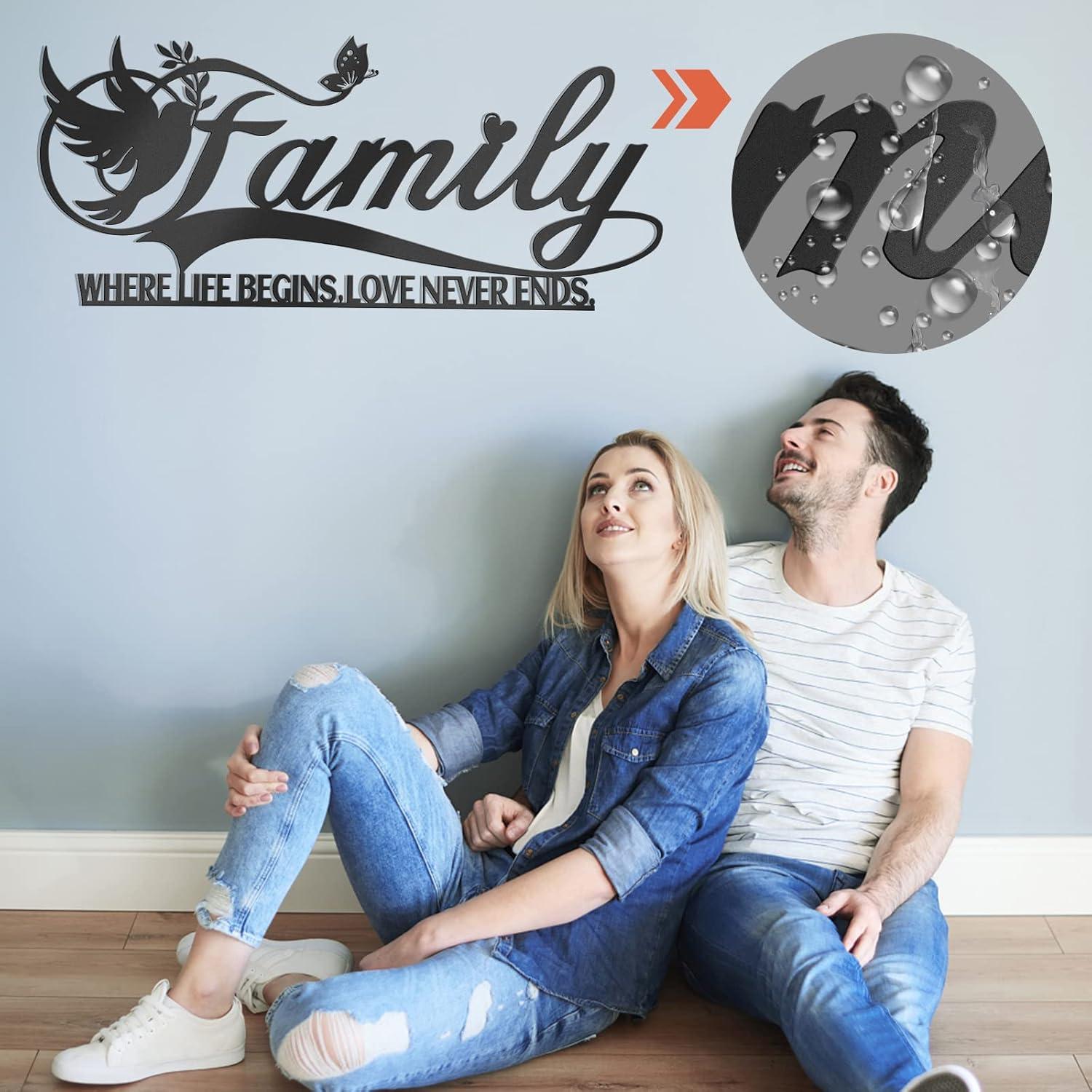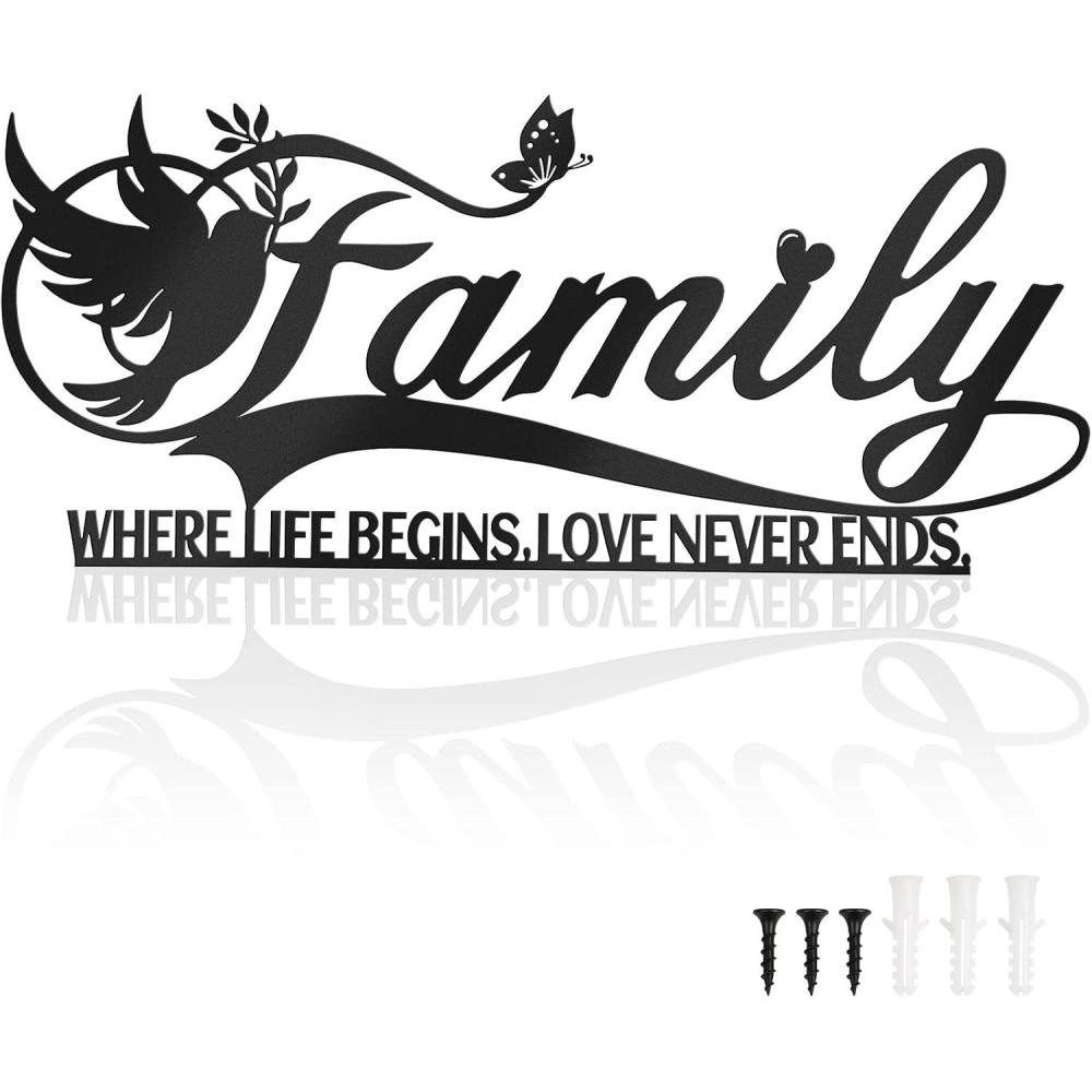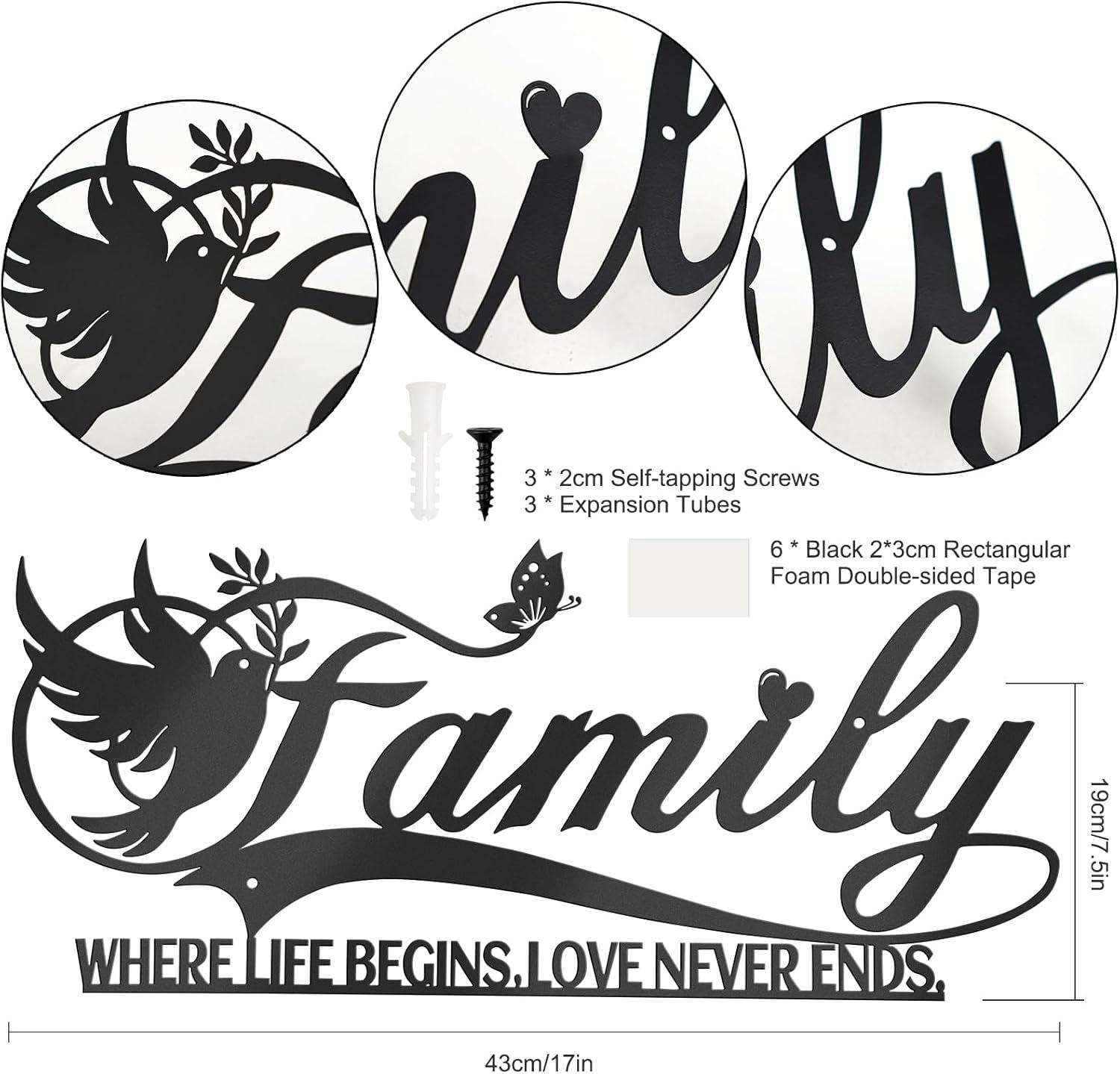 DILIBRA Family Sign Black Metal Wall Decor, Family Where Life Begins and Love Never Ends Word Wall Art Home Decor, Iron Letters Quotes Wall Hanging Decoration for Living Room Dining Room