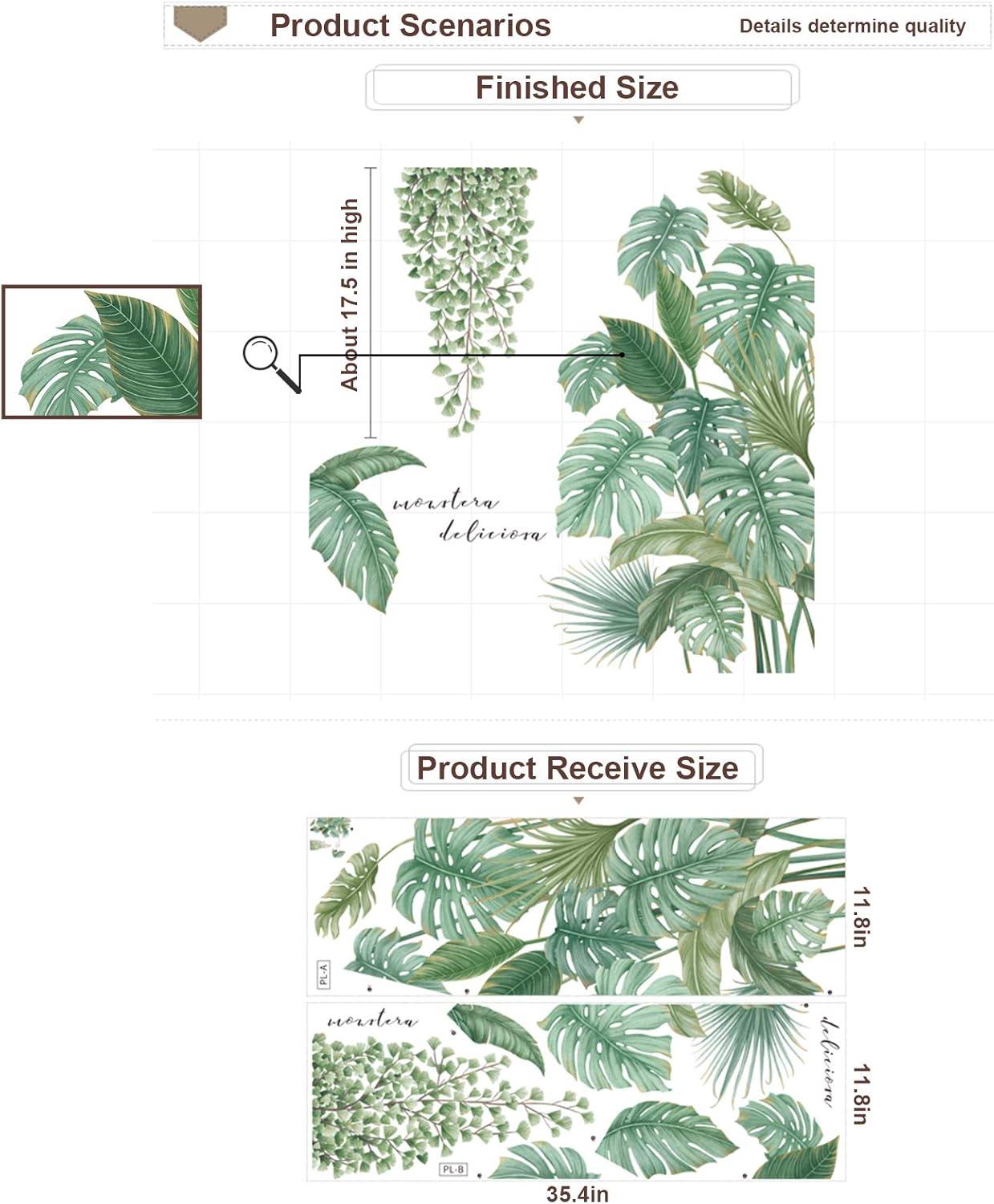 – Beautiful tropical plant wall stickers, print art and modern design into an eye-catching mural. Bright tone and the strongcolor, perfectly decorate your room and experss yourself.